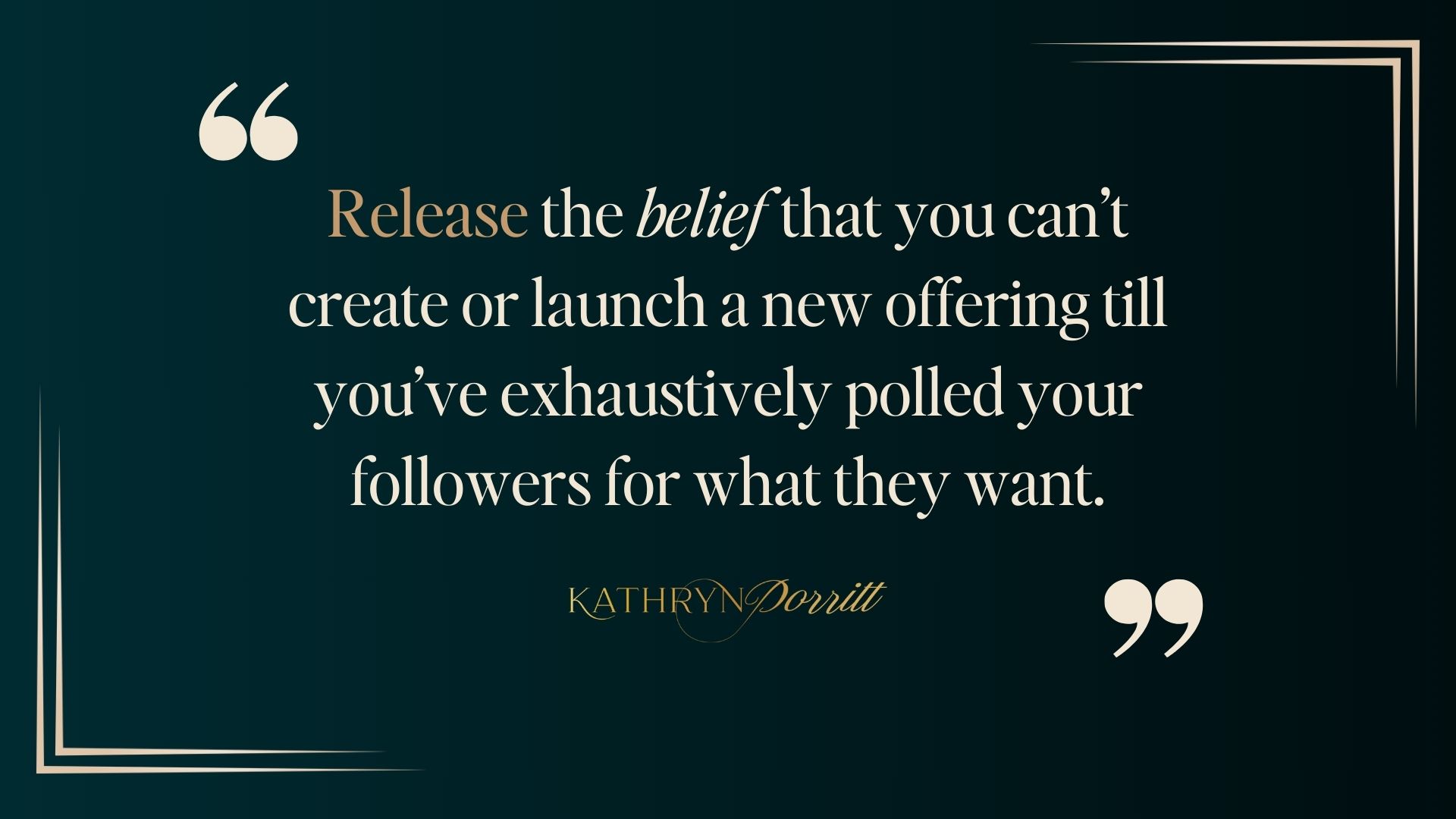 Release the belief that you can’t create or launch a new offering till you’ve exhaustively polled your followers for what they want.