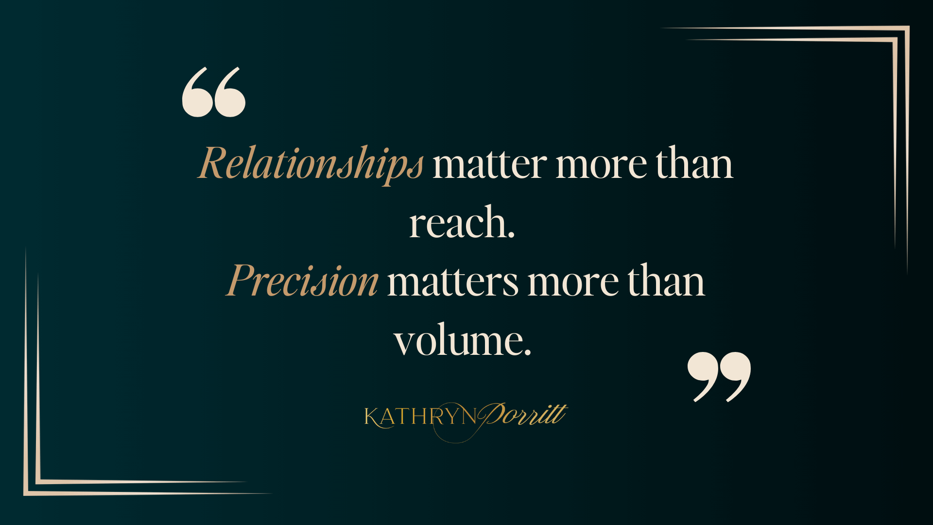 That wedding planner was known. Referred. Chosen. Because they operated in a world where precision matters more than volume, where relationships matter more than reach, where being chosen by the right person matters more than being discoverable by everyone.