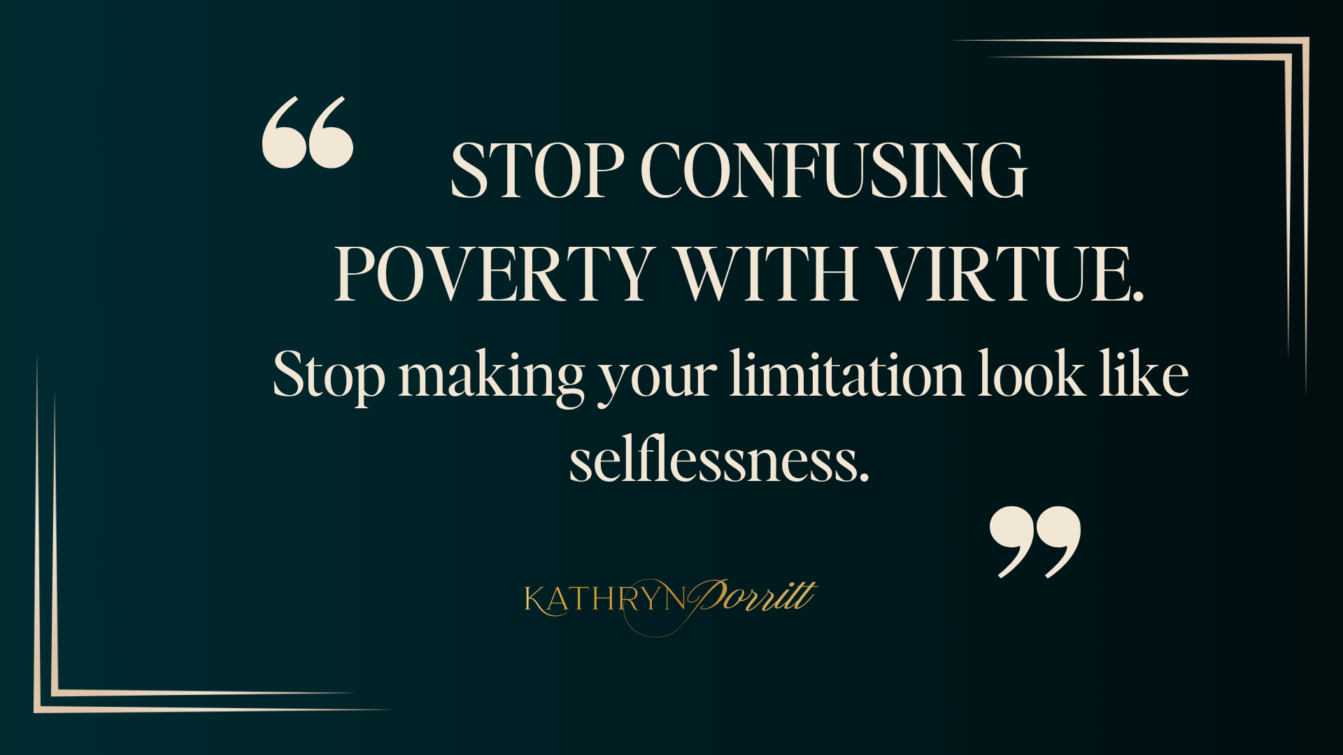 Stop confusing poverty with virtue. Stop making your limitation look like selflessness.